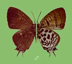 - Hayashi, Hisakazu, 1984: New Synonyms, New Status, New Combinations, New Species and New Subspecies of Butterflies from the Philippines and Indonesia (Lepidoptrea: Satyridae, Riodinidae, Lycaenidae). IWASE. 2: 9–28.