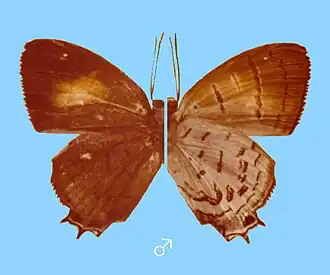 - Hayashi, Hisakazu, 1984: New Synonyms, New Status, New Combinations, New Species and New Subspecies of Butterflies from the Philippines and Indonesia (Lepidoptera: Satyridae, Riodinidae, Lycaenidae). IWASE. 2: 9–28.