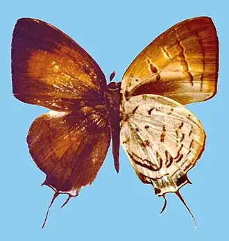 - Hayashi, H., 1984. New synonyms, new status, new combinations, new species and new subspecies of butterflies from the Philippines and Indonesia (Lepidoptera: Satyridae, Riodinidae, Lycaenidae). IWASE 2: 9–20, ill. Reference page.