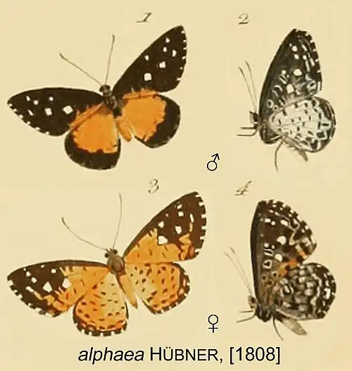 - Lemonias maculata alphaea Hübner, [1806]: pl.37. BoA photos