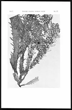 - Taylor, W.R. 1945. Pacific marine algae of the Allan Hancock Expeditions to the Galapagos Islands. Hancock Pacific Expeditions. 12: i–iv, 1–528, 3 figs, 100 pls. Online BHL Hathitrust Reference page. : 109–111, pls 20–22.