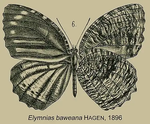 • Elymnias baweana Hagen, 1896: 184, pl.4, fig.6.