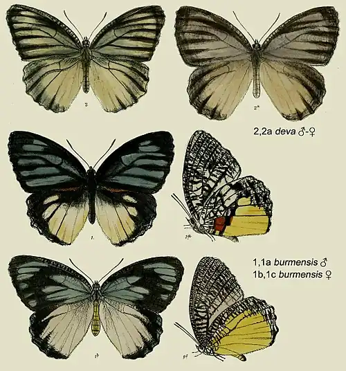 - Mimadelias deva Moore, [1894]: 167, pl.142 figs 2-2a. TL: Khasia Hills, Assam (India: Meghalaya, Khasi Hills), BMNH. Synonymised by Wei et al, 2017.