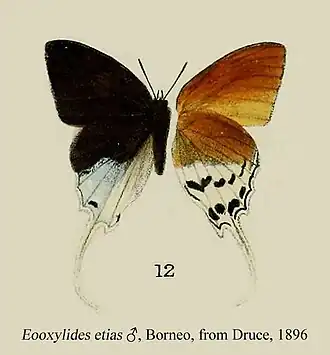 - Eoöxylides [sic] etias (Distant & Pryer); Druce, 1896: 680, pl. 31, fig. 12 ♂.