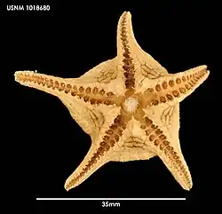 - Clark, H.L. 1920a. Reports on the scientific results of the expedition to the Eastern Tropical Pacific, in charge of Alexander Agassiz, by the U.S. Fish commission Steamer “Albatross”, from October 1904, to March 1905, Lieut. Commander L.M. Garrett, U.S.N., Commanding. XXXII. Asteroidea. Memoirs of the Museum of Comparative Zoology. 39(3): 70–154. BHL. Reference page.