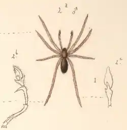 - Sundevall, J. C. 1830. Svenska spindlarnes beskrifning. Kongliga Svenska Vetenskaps Academiens nya Handlingar 1829: 188–219 (also as separate, pp. 1-32). [25]