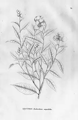 - Lecythis angustifolia (Mart.) Endl. ex O.Berg in C.F.P.von Martius & auct. suc. (eds.), Fl. Bras. 14(1): 489 (1858).
