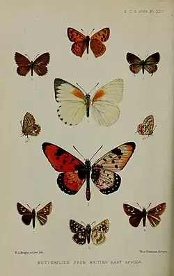 - Butler, A. G., 1899. On two small collections of butterflies made by Mr. Richard Crawshay during 1898 in British East Africa. Proceedings of the Zoological Society of London 1899: 417–427, BHL. Reference page.