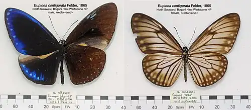 - Euploea configurata C. & R. Felder, [1865]: 326, pl. 42, f. 1-2 ♀.