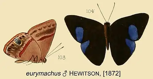 - Eurygona eurymachus Hewitson, [1872]: Eurygona IX text; figs 103,104.