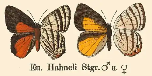 - Staudinger, O., 1888, in Staudinger, O. & Schatz, E., 1884–1888. Exotische Schmetterlinge 1. Exotische Tagfalter (1) Beschreibungen. [6], 333 pp. (2) Abbildungen. [4] 100 pls. Fürth. text, plates. Reference page.