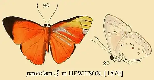 - Eurygona praeclara Hewitson, [1869]: 48; Hewitson, [1870]: Eurygona IX text, figs 89,90.