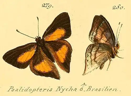 - Psalidopteris nycha Hübner, [1823]: 17, pl.49 figs 279,280.