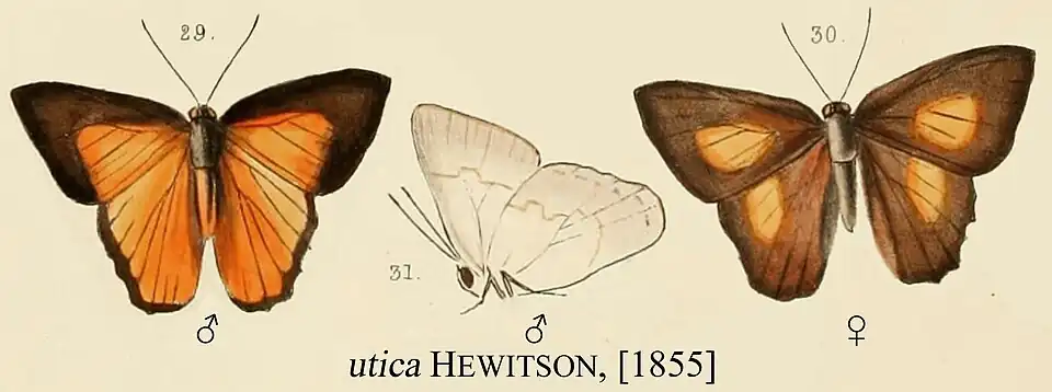 - Eurygona utica Hewitson, [1855]: Eurygona III, text, figs 29-31.