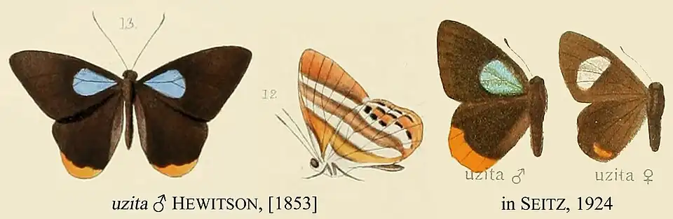 - Euselasia uzita (Hewitson); Seitz, 1924: 623, 121a; Lamas, 2004: 141.