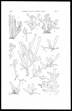 - Taylor, W.R. 1945. Pacific marine algae of the Allan Hancock Expeditions to the Galapagos Islands. Hancock Pacific Expeditions. 12: i–iv, 1–528, 3 figs, 100 pls. Online BHL Hathitrust Reference page. : 154–155, pl. 5: figs 8–12