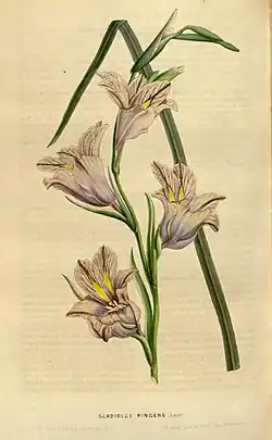 - Gladiolus ringens Andrews, Bot. Repos. 1: t. 27. 798. 1797 .