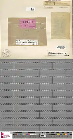 - Kützing, F.T. 1845. Phycologia Germanica, d. i. Deutschlands Algen in bündigen Beschreibungen. Nebst einer Anleitung zum Untersuchen und Bestimmen dieser Gewächse für Anfänger. pp. i–x, 1–340. Nordhausen: W. Köhne. BHL Reference page. : 191