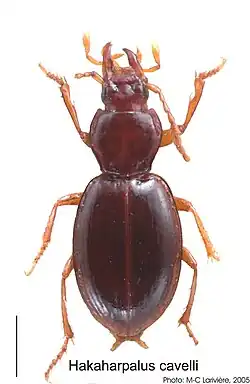 Hakaharpalus cavelli (Broun, 1893; Tachys) [comb. Larochelle & Larivière (2005: 57, 93)]