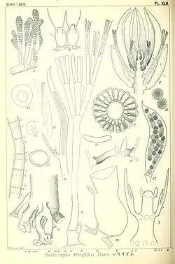 - Harvey, W.H. 1860. Characters of new algae, chiefly from Japan and adjacent regions, collected by Charles Wright in the North Pacific Exploring Expedition under Captain James Rodgers. Proceedings of the American Academy of Arts and Sciences 4: 327–335. BHL Reference page.