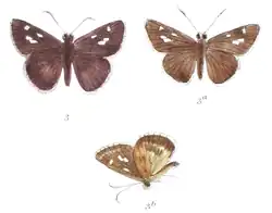 - Evans, W.H. 1949. A catalogue of the Hesperiidae from Europe, Asia and Australia in the British Museum (Natural History). xix+502pp., 53 pls. BMNH, London. Reference page.
