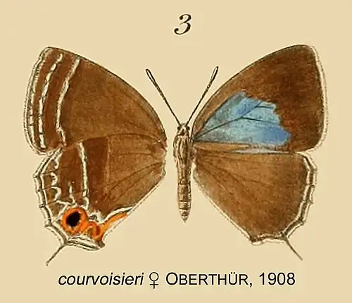 - Thecla (Zephyrus) courvoisieri Oberthür, 1908: 312, pl.5 fig.3 ♀.