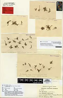 - Type locality: Pihama, Taranaki, New Zealand. Holotype: Lindauer; 30 January 1945; UC Lindauer 5441. Isotype: AD (A3982). Distributed as Alg. Nova-Zel. Exsicc. No. 284.