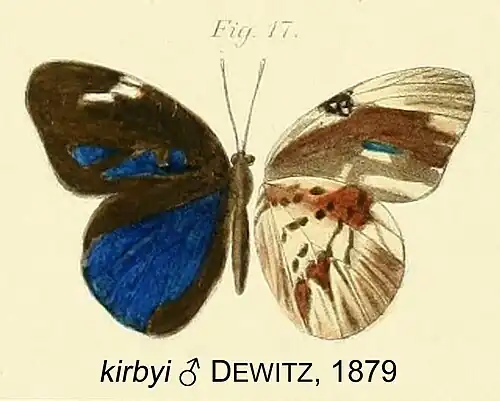 - Hewitsonia kirbyi Dewitz, 1879: 207, pl.2 fig.17; Stempffer, 1967: 94; Williams, 2007: Epitolina 74.