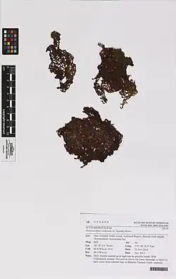 - Silberfeld, T., Rousseau, F. & Reviers, B. de 2014. An updated classification of brown algae (Ochrophyta, Phaeophyceae). Cryptogamie, Algologie 35(2): 117–156. DOI: 10.7872/crya.v35.iss2.2014.117 Reference page.