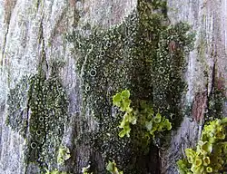 English: Shadow-crust lichens, Hyperphyscia lichens