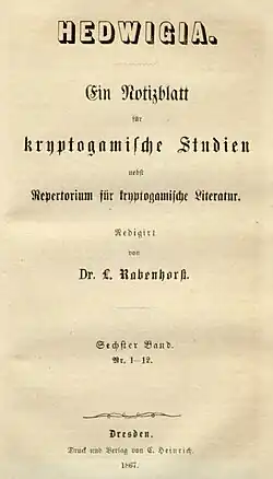 - Series title: Hedwigia: Organ für Kryptogamenkunde und Phytopathologie nebst Repertorium für Literatur
