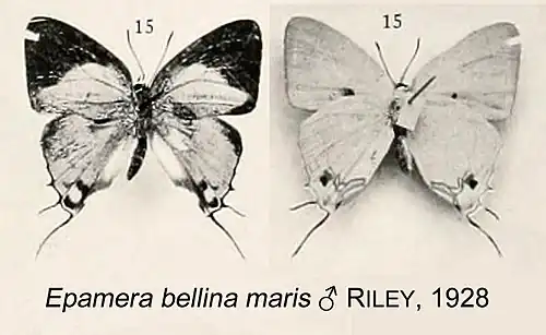 - Epamera bellina maris Riley, 1928: 388, pls.10,11 Fig.15.