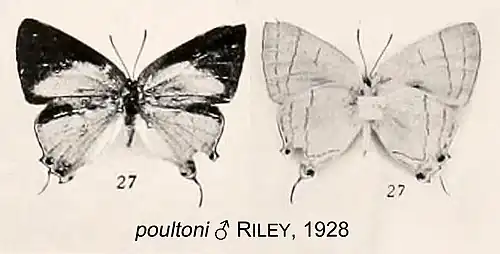 - Iolaus (Pseudiolaus) poultoni Riley; Stempffer, 1967: 127; Bridges, 1994: VIII.380; Williams, 2007: 135.