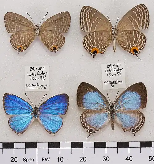 - Jamides caerulea (Druce) D'Abrera, 1986: 645.