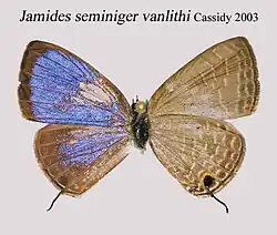 - Rawlins, A., Cassidy, A., Müller, C., Schröder, S. & Tennent, W. J. 2014. An Illustrated and annotated checklist of Jamides Hübner, 1819, taxa occurring in the Indonesian Provinces of North Maluku and Maluku (Lepidoptera: Lycaenidae). Nachrichten des Entomologischen Vereins Apollo N.F. 35(1/2): 5-39. web Reference page.