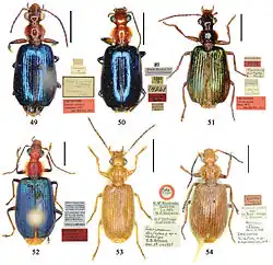 Calleida  Calleidomorpha  Callidadelpha  Calodromius  Carbonellia  Catascopellus  Catascopus  Celaenephes  Chaudoirina  Coptodera  Coptoglossus  Coptoptera  Coptopterella  Coptopterina  Crassagena  Cryptobatis  Cteatus  Cyanotarus  Cylindrocranius  Cylindronotum  Cylindropectus  Cymindis  Cymindoidea