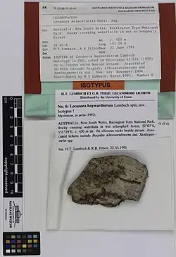 - Lecanora haywardiorum Lumbsch, in Lumbsch et al., Mycotaxon 45: 476 (1992)