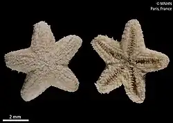 - Jangoux, M. & Aziz, A. 1988. Les astérides (Echinodermata) récoltés autour de l’île de la Réunion par le N.O. « Marion-Dufresne » en 1982. Bulletin du Muséum national d'histoire naturelle (A) 4(10): 631–650. BHL . Reference page.