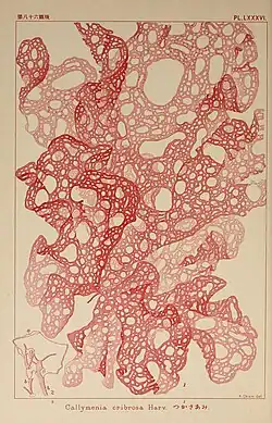 - Saunders, G.W., Huisman, J.M., Vergés, A., Kraft, G.T. & Le Gall, L. 2017. Phylogenetic analyses support recognition of ten new genera, ten new species and 16 new combinations in the family Kallymeniaceae (Gigartinales, Rhodophyta). Cryptogamie, Algologie 38(2): 79–132, 126 figs. DOI: 10.7872/crya/v38.iss2.2017.79 Reference page. : 113