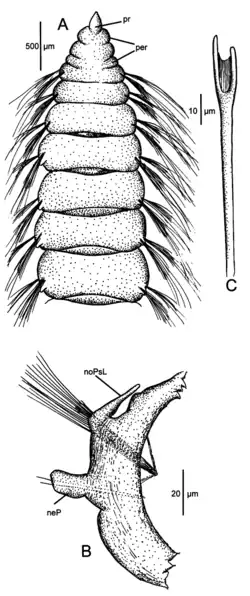 • Hartman, O. 1967. Polychaetous annelids collected by the USNS Eltanin and Staten Island cruises, chiefly from Antarctic Seas. Allan Hancock Monographs in Marine Biology 2: 1–387. Reference page.  [see pages 103-104 as Haploscoloplos abranchiata, original description]