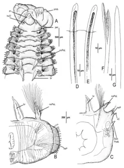 Reference page. [see page 35] - Chamberlin, R.V. 1919. The Annelida Polychaeta [Albatross Expeditions]. Memoirs of the Museum of Comparative Zoology at Harvard College. 48: 1-514 BHL Reference page. [see page 357-358, original description of Branchethus]