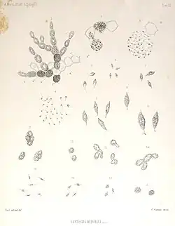 - Borzì, A. 1883. Studi algologici. Saggio di richerche sulla biologia delle Alghe. Fascicolo I. pp. [i]–vi, [i, h.t.], [i]–i 117, [i, cont.], errata slip, IX pls., uncol. liths. by author. Messina: Gaetano Capra. BHL Reference page. : 17, pl. 2: figs 1–18