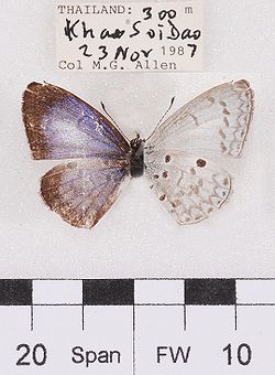 - Eliot, J. N. & Kawazoé, A. 1983. Blue butterflies of the Lycaenopsis group. British Museum (Natural History), London. ISBN 0-565-00860-9. Reference page.