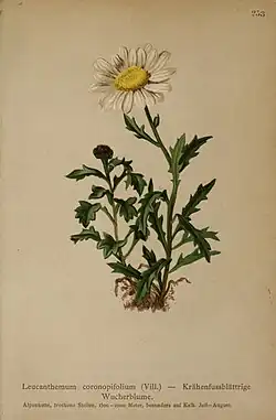 - Hassler, M. 2017. Leucanthemum coronopifolium. World Plants: Synonymic Checklists of the Vascular Plants of the World In: Roskovh, Y., Abucay, L., Orrell, T., Nicolson, D., Bailly, N., Kirk, P., Bourgoin, T., DeWalt, R.E., Decock, W., De Wever, A., Nieukerken, E. van, Zarucchi, J. & Penev, L., eds. 2017. Species 2000 & ITIS Catalogue of Life. Published online. Accessed: 2017 Nov 25. Reference page.