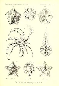 - Perrier, E. 1881. Reports on the Results of Dredging by the United States Coast Survey Steamer "Blake" XIV. Description sommaire des espèces nouvelles d'Astéries. Bulletin of the Museum of Comparative Zoology at Harvard College 9: 1-32 BHLReference page. [original description of Marginaster pectinatus p. 16–17]