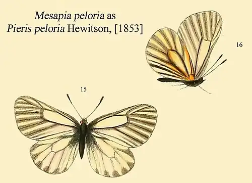 - Pieris peloria Hewitson, [1853] 1: 8, pl. 4, figs 15, 16.