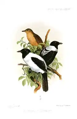 Monarcha godeffroyi (front to back: ♂, ♀, juvenile)