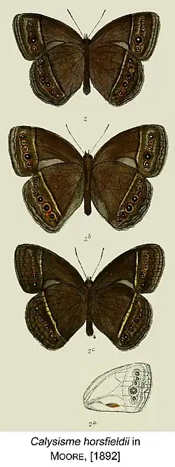 - Calysisme horsfieldii Moore, [1892]: 197, Figs 2,2a,2b,2c.