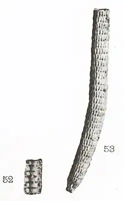 - Morellet, L. & Morellet, J. 1913. Les Dasycladacées du Tertiaire parisien. Mémoires de la Société Géologique de France. Paléontologie 21(1) [47]: 1–43. BHL Reference page.