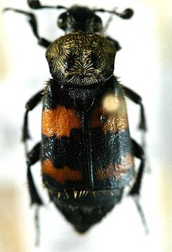 - Lowe, A.J. & Lauff, R.F. 2012. Arboreal burials in Nicrophorus spp. (Coleoptera: Silphidae). Psyche, Article ID 578650, pp. 1–6. DOI: 10.1155/2012/578650 Reference page.